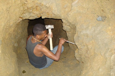 In the Dominican region, amber is mined from mountainsides by digging narrow tunnels that may extend up to 20 meters. The La Toca mines are especially known for producing vertebrate fossils. Amber exposed after landslides is removed using picks and shovels. The mining process is not mechanized and is highly risky, as the tunnels are poorly lit, damp, and slippery, lacking proper structural support.