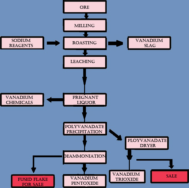 Generating Vanadium pentoxide from various ores: